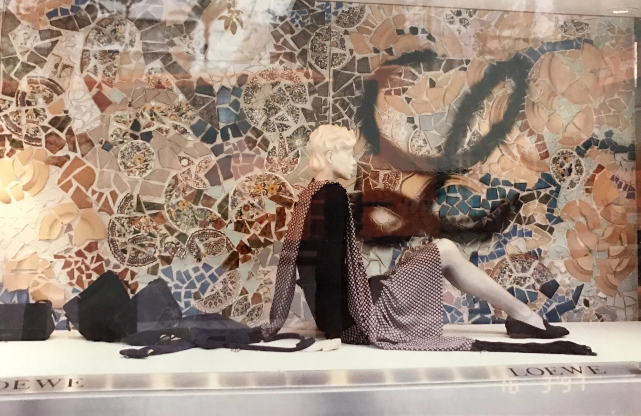 Ceramicas Sevilla collage as a background in Loewe windows.